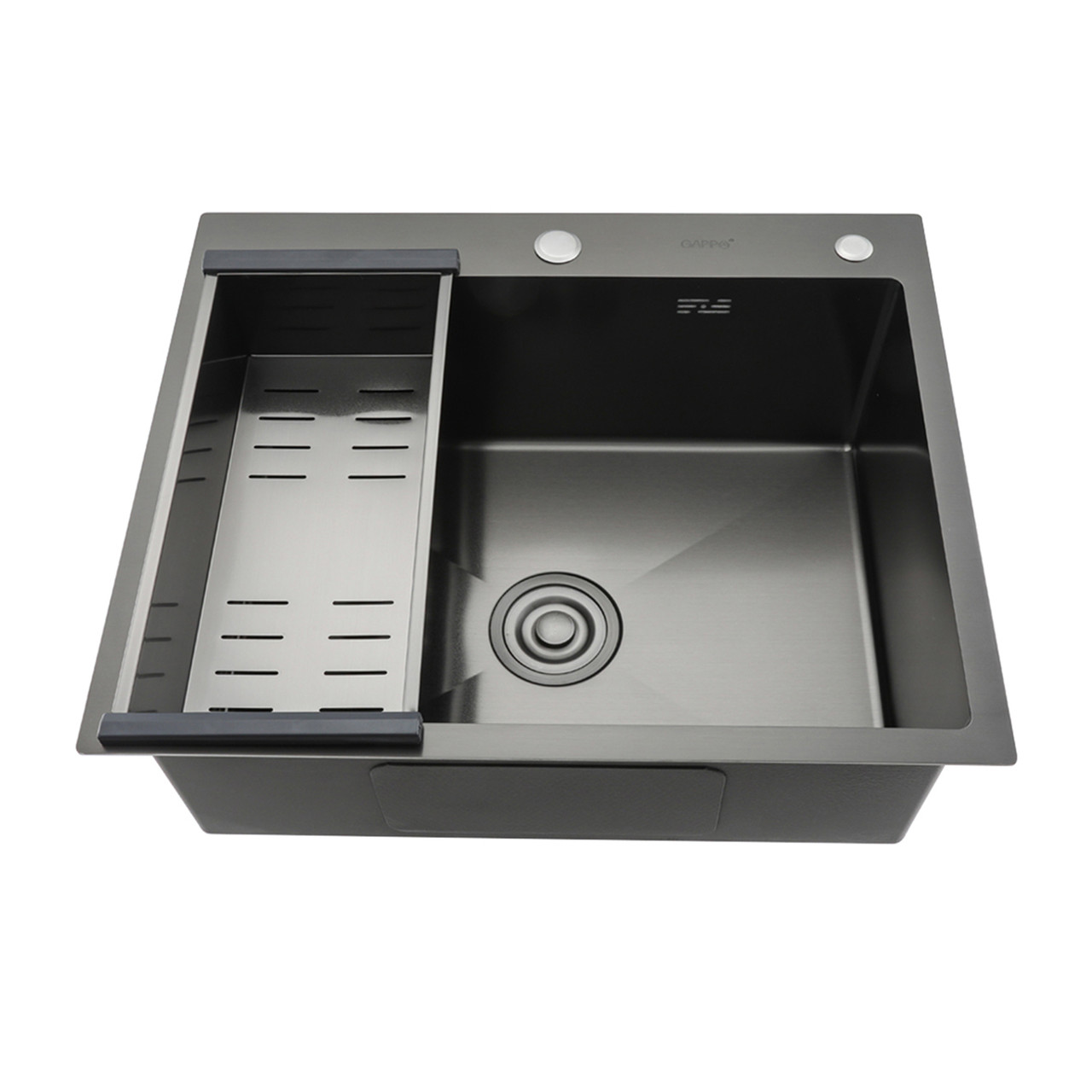 Кухонная мойка с коландером и сливной арматурой Gappo черный GS6050-6